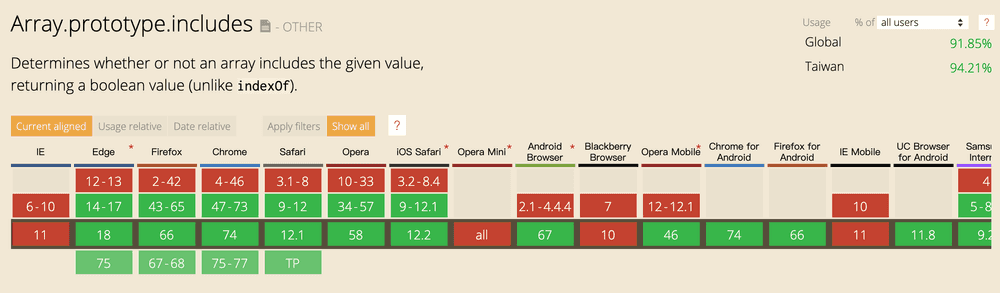 那麼什麼時候才要用polyfill呢?這取決於客戶和使用者瀏覽的環境,如果環境是能夠實現需要的功能,那就避免放入冗長的polyfill,而我平常會使用 https://caniuse.com/ 檢查這原生方法是否有在該環境實現,來決定是否載入該polyfill。而另外也有一些較新的解決方法,例如 https://polyfill.io/v3/ 使用api request查找環境是否需使用polyfill,但由於我還沒有試過,所以不作評論。
