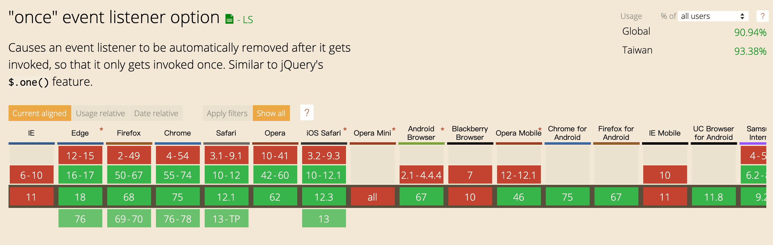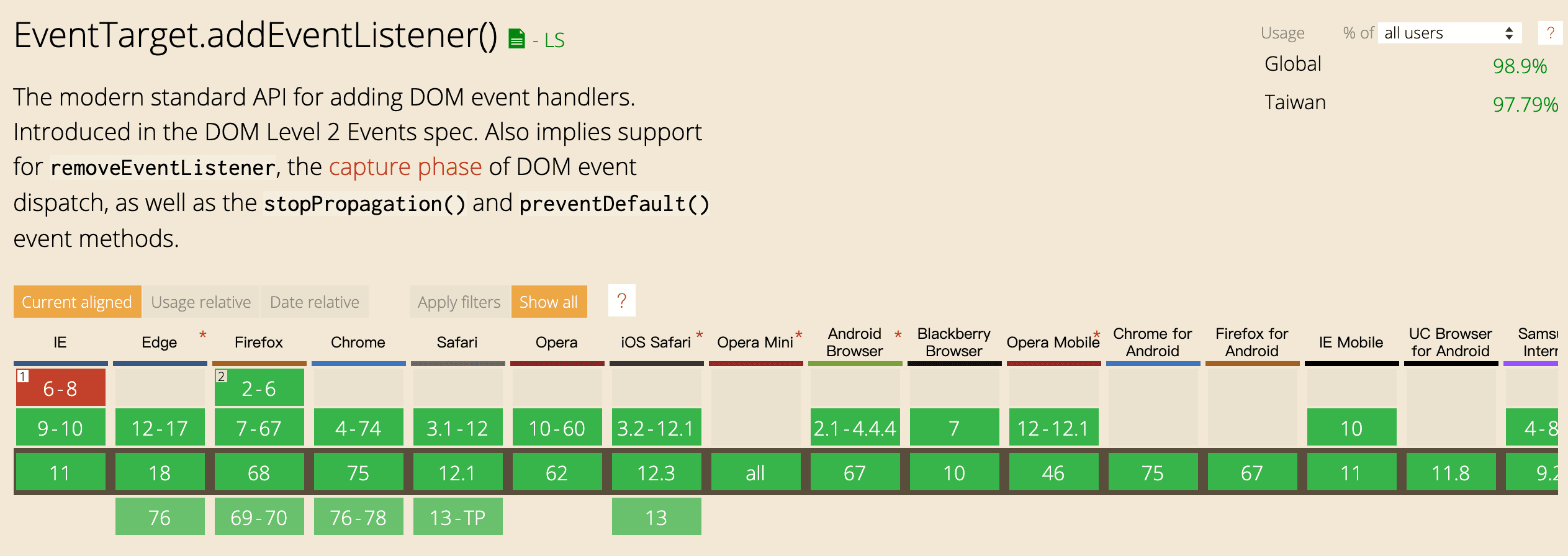 開始這個系列的原因,是因為雖然在程式中可能是不影響功能的小事,但卻會關係到整個大系統的流暢度,或是程式碼的簡潔度,這次要提及的是關於javascript與畫面互動最重要的方法,addEventListener,但這次重點不在於元素上有哪些的互動事件(如IE10以後新增的事件transitionend),而是該方法的第三個參數,綁定監聽事件的擴充選項(options)。