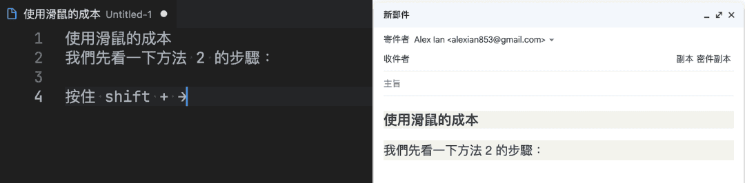 例如在純文字編輯器內執行貼上,系統會使用 ClipboardItem 中 text/plain 格式的內容貼上;而一些郵件編輯器中,則會貼上 text/html 格式的內容,但最終貼上的內容還是要視乎應用程式的設計而定。
