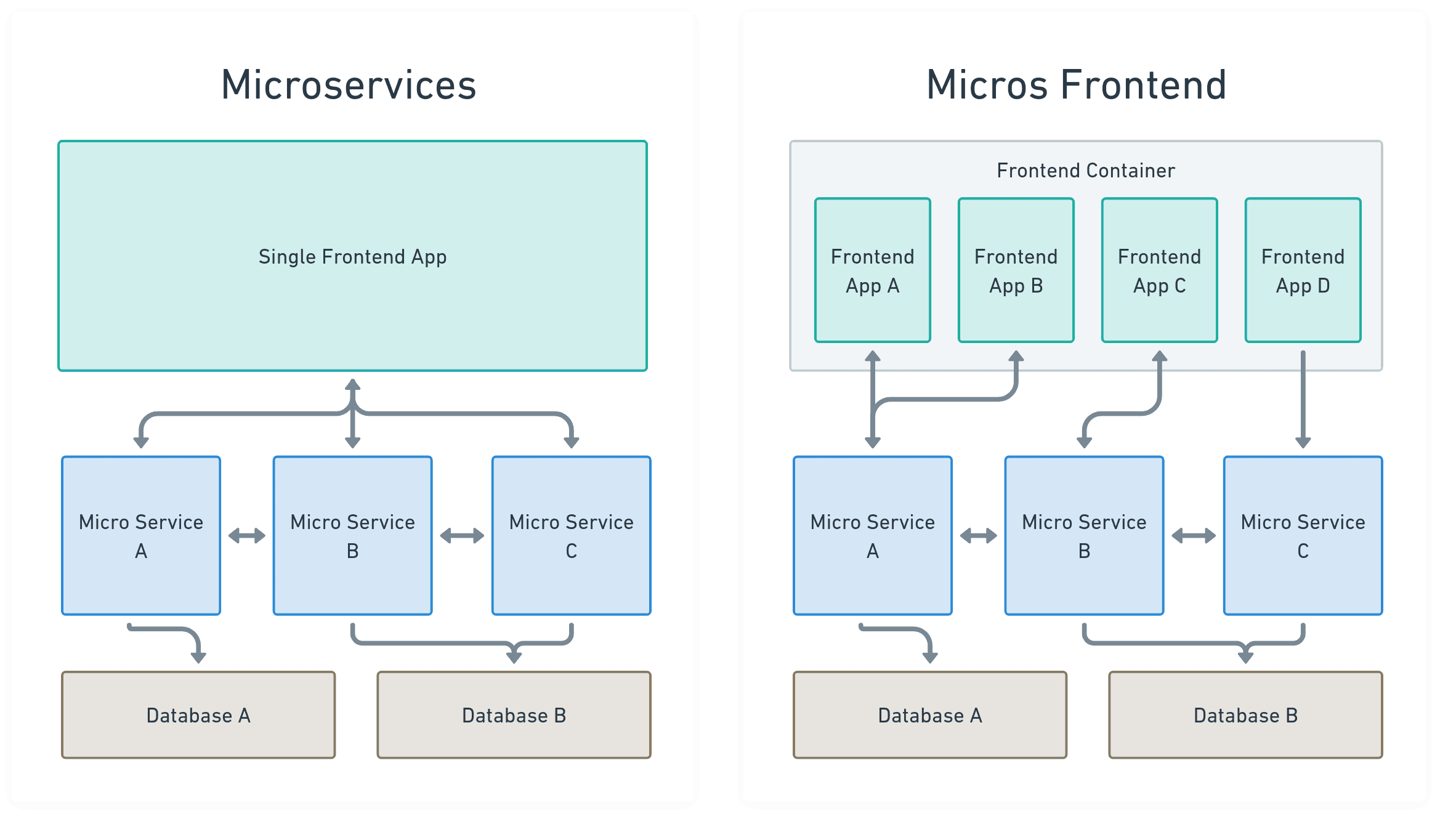 以圖例來比較微服務與微前端: