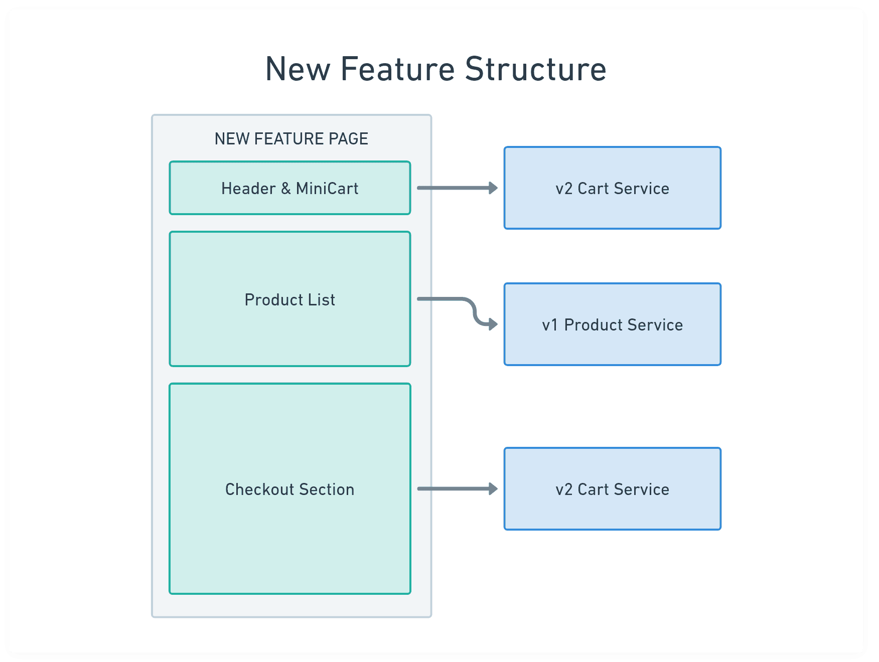 除了單一應用的困難外,微前端架構下的子應用之間如果有溝通的需求,或是各應用有複用的資料時,要共用狀態或是切分,也要在開發之前一併考量。在我們的案例中,由於商品列表在加入購物車後,需要通知 mini-cart 與結帳流程有新商品的加入,而 mini-cart 與 結帳流程 間也需要互相知悉購物車最新的狀態,因此需要一個統一的事件溝通方案。