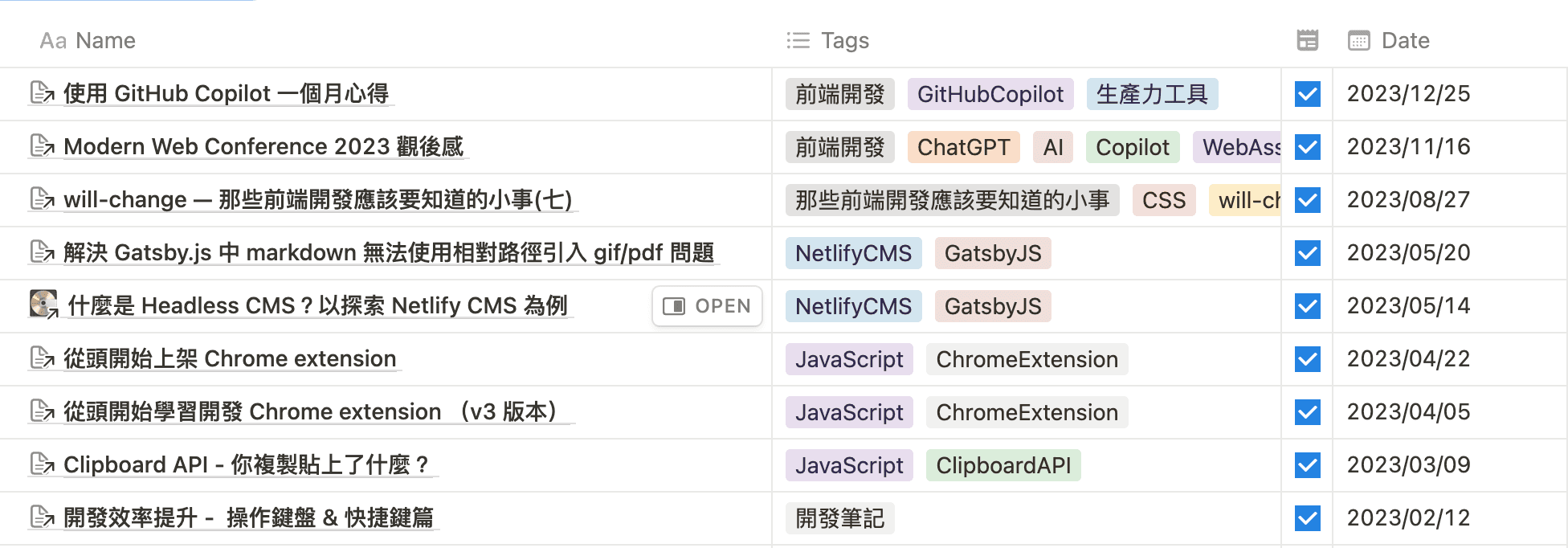 為了有效的追蹤自己完成年度目標的進度,目前打算使用 Notion 的 Template;才發現 Notion 除了友善的寫作介面外,還有更多可能性,包含像是 database 的 Table 資訊,使用 relation 輸入函式 Formula(類似 excel 的公式)